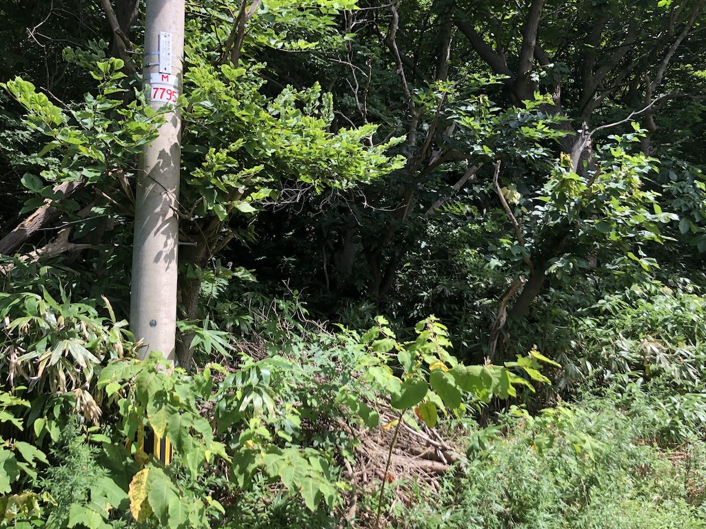 他の方のブログで「電柱番号7795のところから登った」という記事を発見.