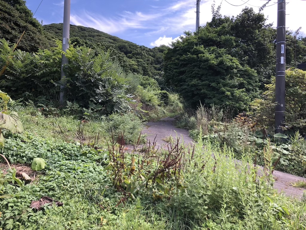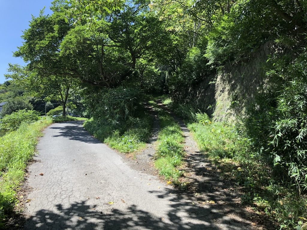 山の麓沿いの住宅街を歩いていると,旧道らしき道を発見.山の方に向かっています.