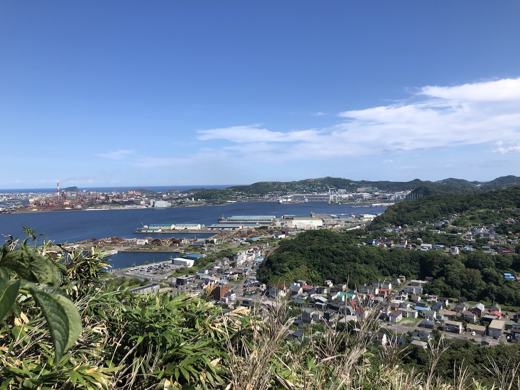 山を縫うように住宅がひしめいています.遠くには日本製鐵の煙突がみえます.鉄の街として栄えた歴史が山頂からも窺い知れます.