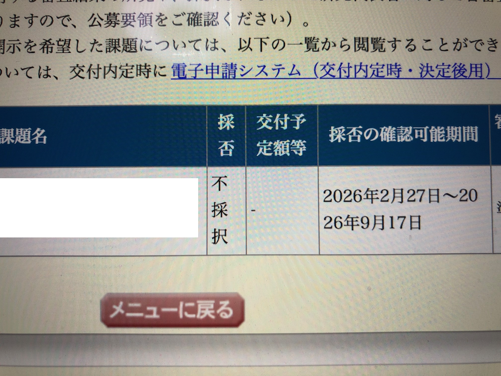 結果は・・・不採択!